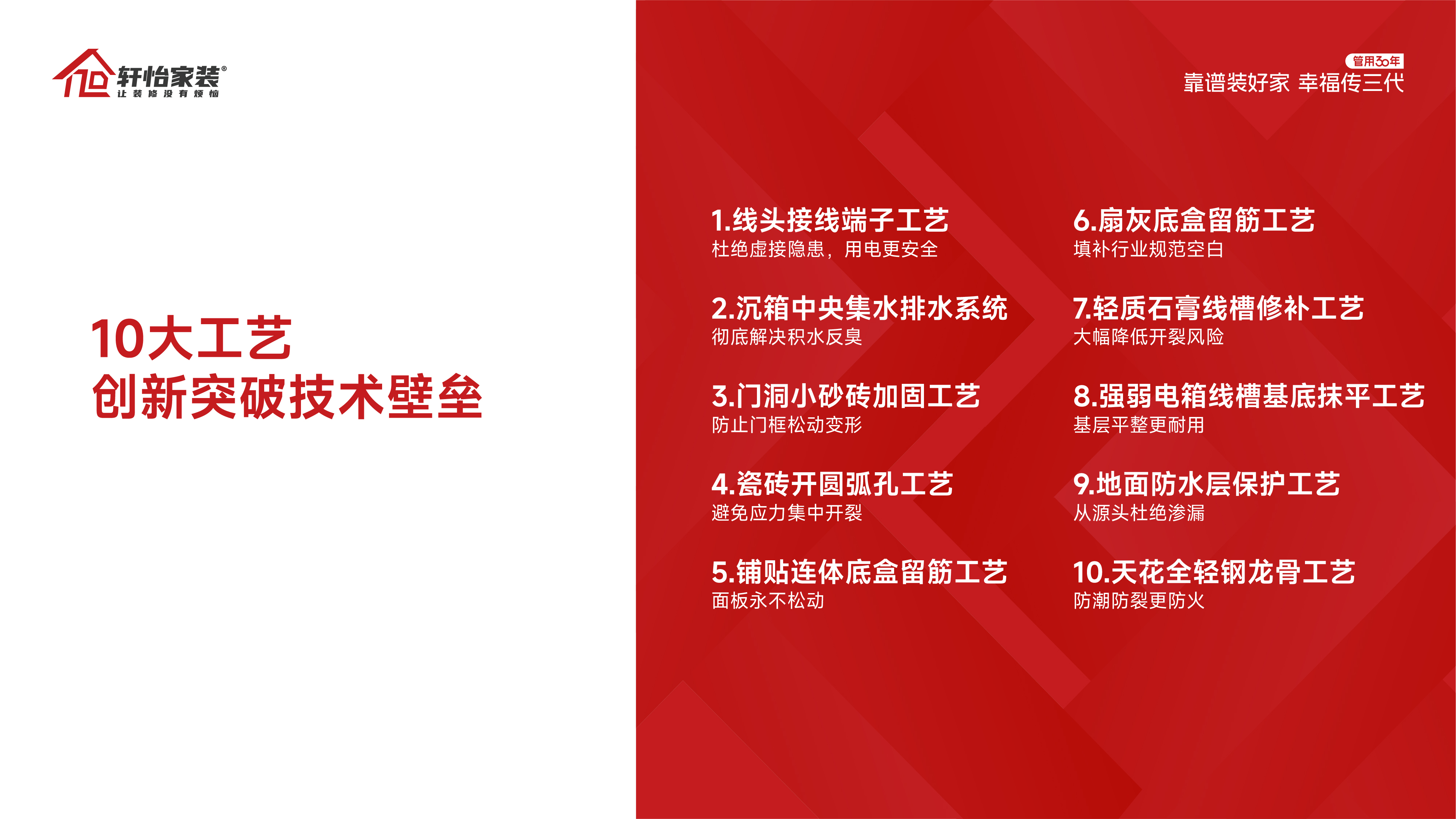 针对传统家装痛点,金钻工程6.0推出十大核心工艺创新: