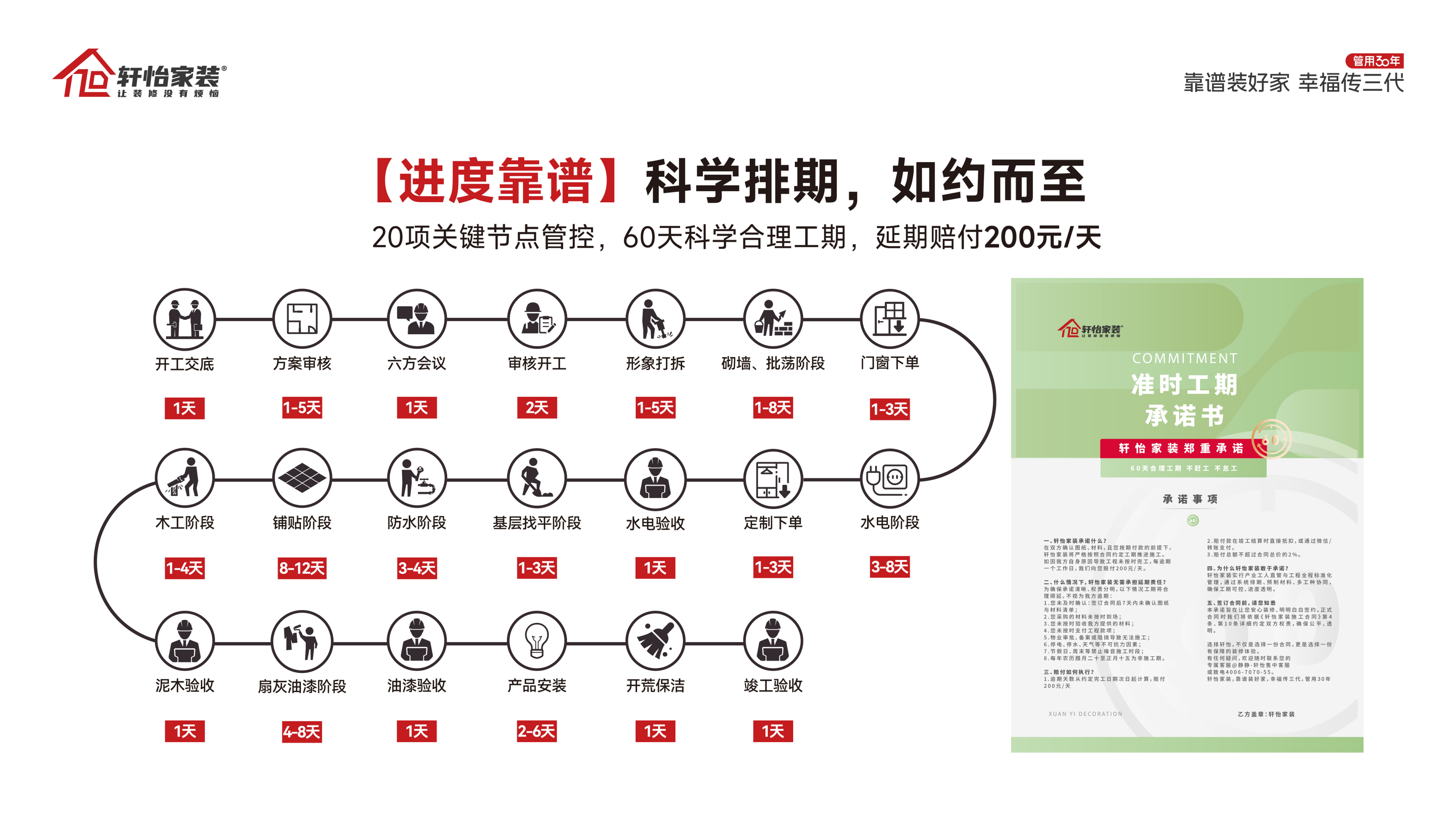 ● 进度靠谱:60天科学工期,延期赔付200元/天