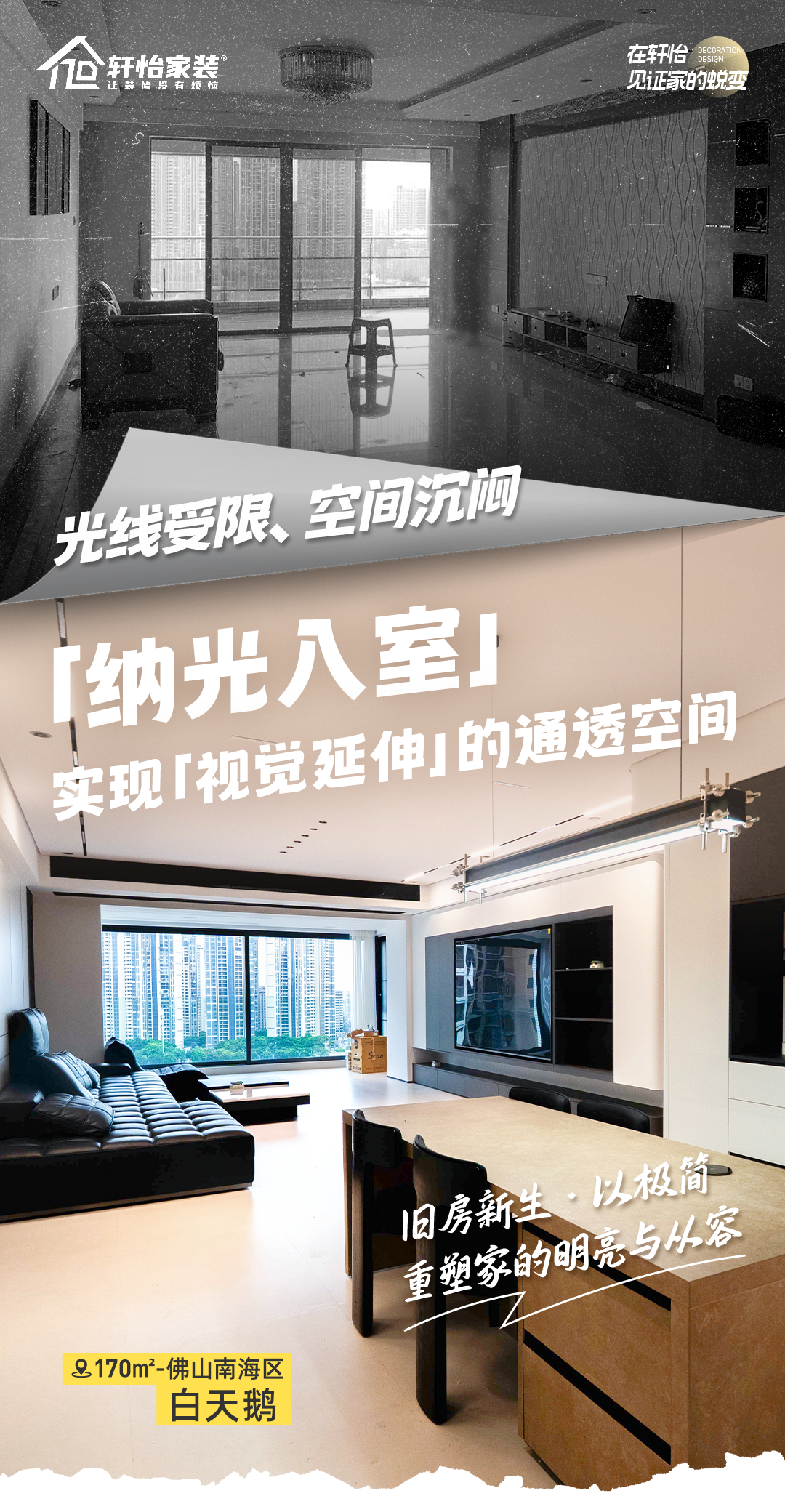 轩怡家装在佛山累计服务超5000+业主,沉淀大量实景案例,涵盖原木风、轻奢风、现代简约、法式轻奢等主流风格,适配不同户型与预算,以下2个典型案例,直观展现落地实力。