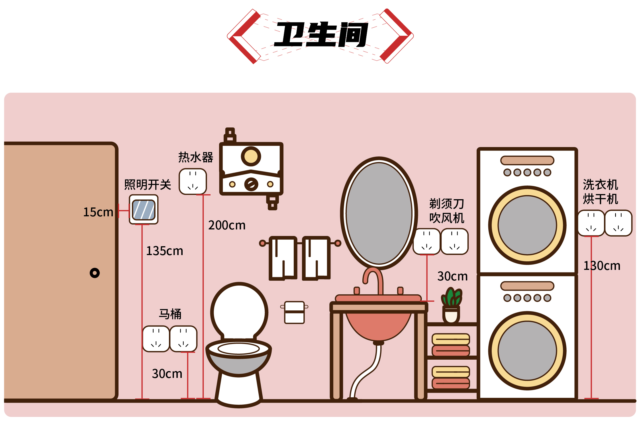 ④卫生间热水器、智能镜灯、洗衣机插座防水保护。